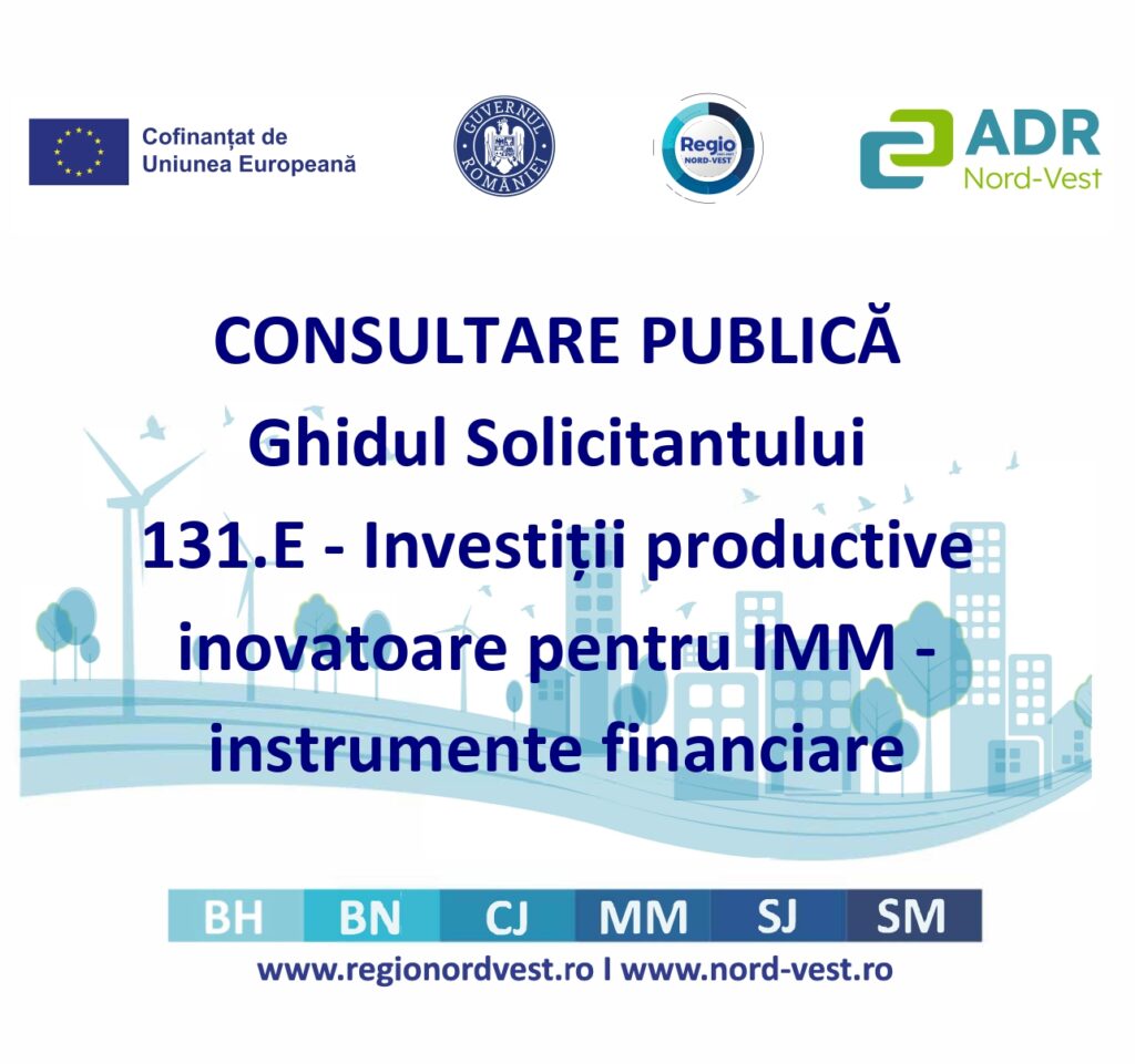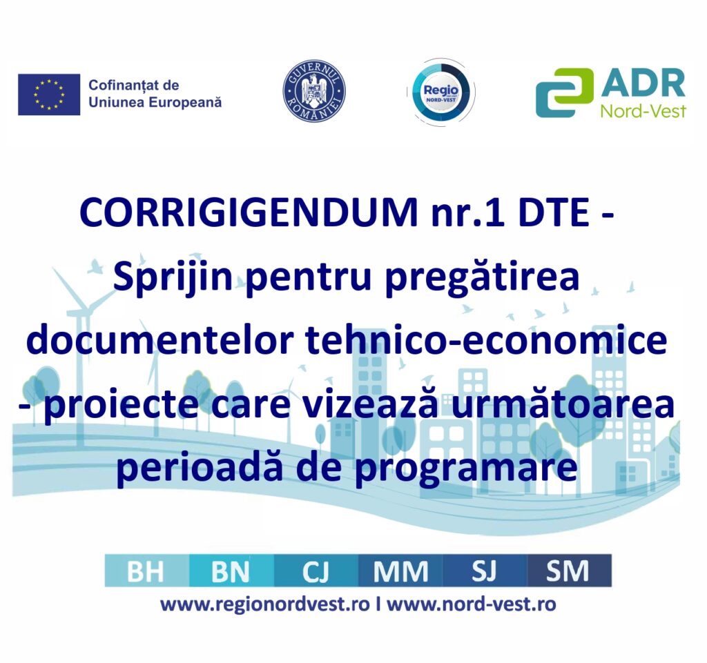 ADR Nord-Vest relansează, astăzi 20.01.2023, Ghidul SIMPLIFICAT – Condiții Specifice de accesare a fondurilor destinate pregătirii proiectelor de infrastructură în domeniile specializării inteligente pentru Regiunea Nord-Vest, „Sprijin la nivelul regiunii de dezvoltare Nord-Vest pentru pregătirea de proiecte finanțate din perioada de programare 2021-2027 pe domeniul specializare inteligentă”, și anexele aferente, în vederea identificării de proiecte pentru acoperirea alocării bugetare pentru regiunea Nord-Vest. Versiunea este aplicabilă pentru apelul / apelurile de proiecte lansate în 2023 – în baza modificărilor prevăzute în Ordinele Ministrului Investițiilor și Proiectelor Europene 3097 din 5.12.2022 și 4737 din 27.12.2022